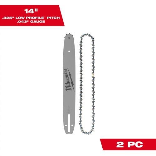 • Includes (1) 14" .325" LOW PROFILE™ Pitch, .043" Gauge Saw Chain and (1) 14" .325" LOW PROFILE™ Pitch, .043" Gauge Guide Bar